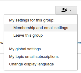 - In the drop down menu, under “My settings for this group:” click “Membership and email settings”
